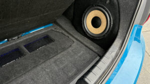 We used Focal IS BMW 100K speakers in the doors to upgrade the 4″ mid-ranges and tweeters. Under the front seats, we replaced the original woofers with Focal ISUB MBW 2 woofers. We used the Focal shallow Flax Sub P 25 FSE subwoofers in each side of the trunk. We custom built enclosure that allowed the majority of the trunk space to remain available for storage. Under the rear floor where the spare tire would be, we installed Audison an Audison Forza AF M8.14 bit eight channel amplifier and a Forza AF M1D subwoofer amplifier. The system was tuned with Audison’s Accordo software.