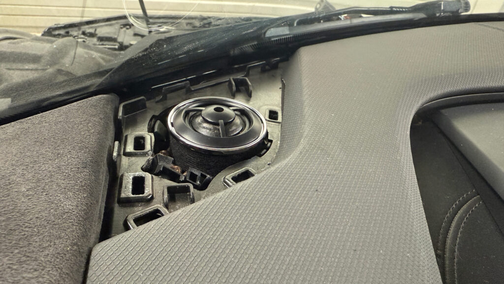 Audi door panel with openings for the GB60 and GB40 speakers for part of the active 3-way speaker system