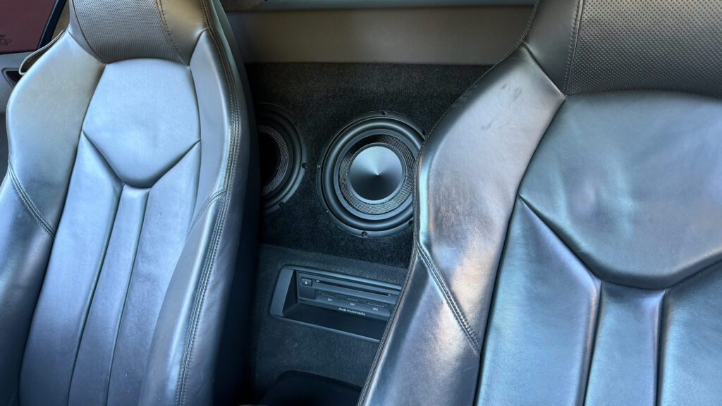 Enclosure behind the seats for triple Audiofrog GS8 subwoofers