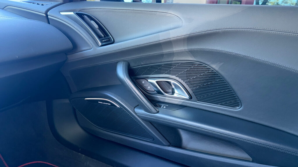 The Bang and Olufsen OEM sound system had to go in this R8.  We wanted to create an excellent sound quality system with precision and accuracy in the music.  This was achieved with Audiofrog GB series speakers powered by Mosconi Pro amplifiers and controlled through an Audison bit One HD Virtuoso processor.  We also installed an Escort MAX 360 Ci built in radar detector with laser shifters.